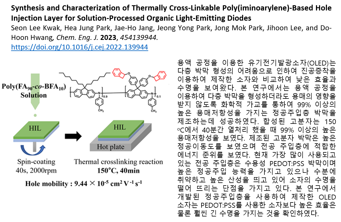 Synthesis and Characterization of Thermally Cross-Linkable Poly(iminoarylene)-Based Hole Injection Layer for Solution-Processed Organic Light-Emitting Diodes